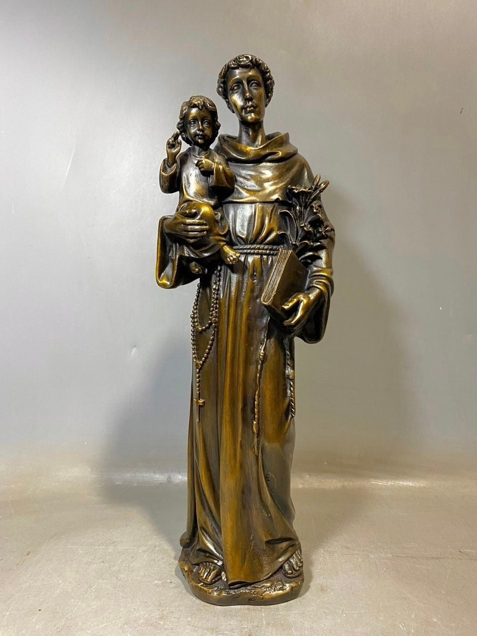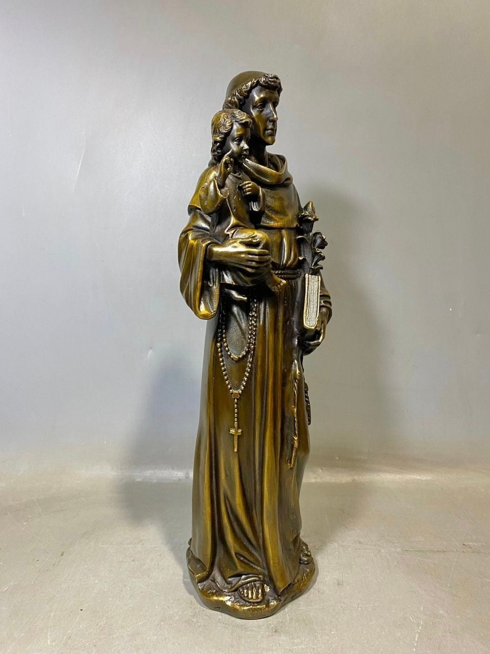 Saint Anthony of Padua Priest Brass Statue with Christ Child, Religious Home Decor, Christian Gift