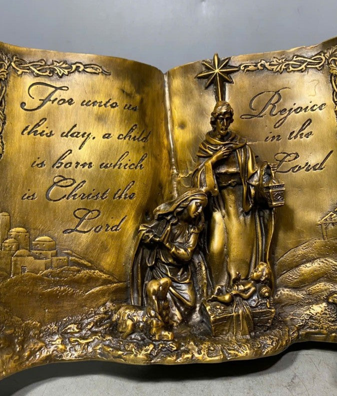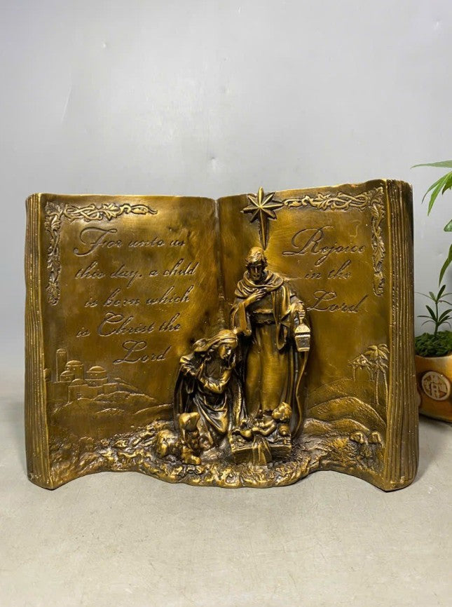 Bronze Holy Family Book Sculpture, Religious Artwork for Home or Office, Christmas Gift