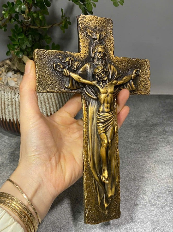 Catholic Cross Statue in Bronze, Sacred Religious Symbol, Perfect Religious Gift