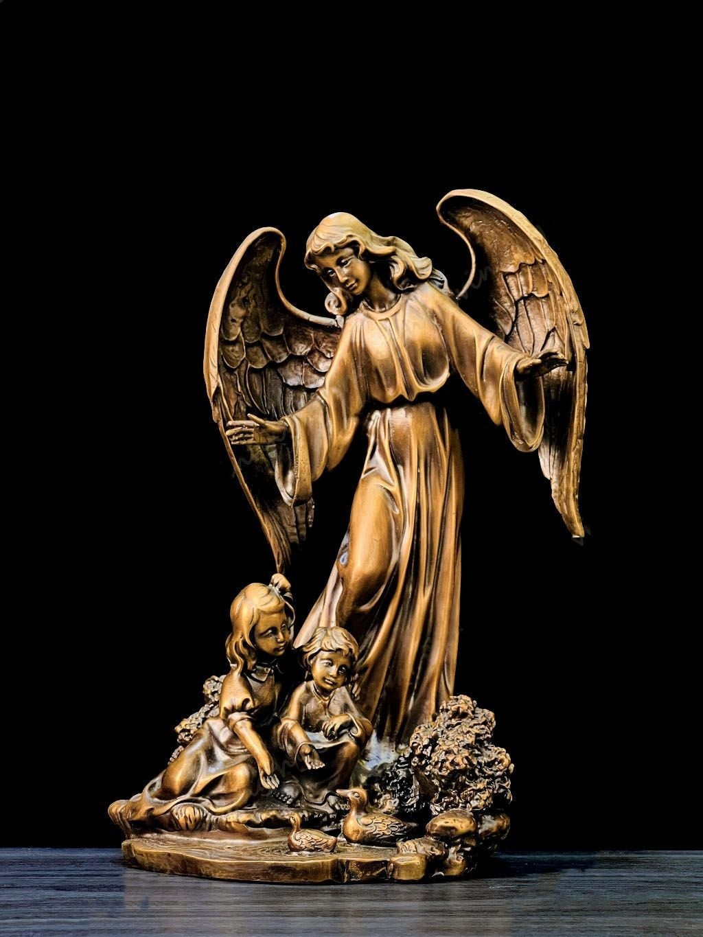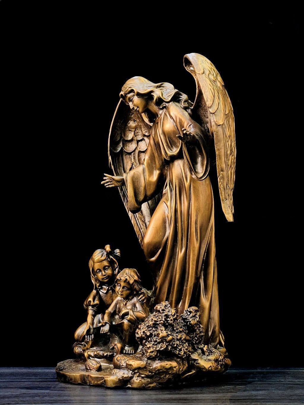 Guardian Angel Brass Statue, Made of Pure Brass with Brown Patina, Religious Home Decor