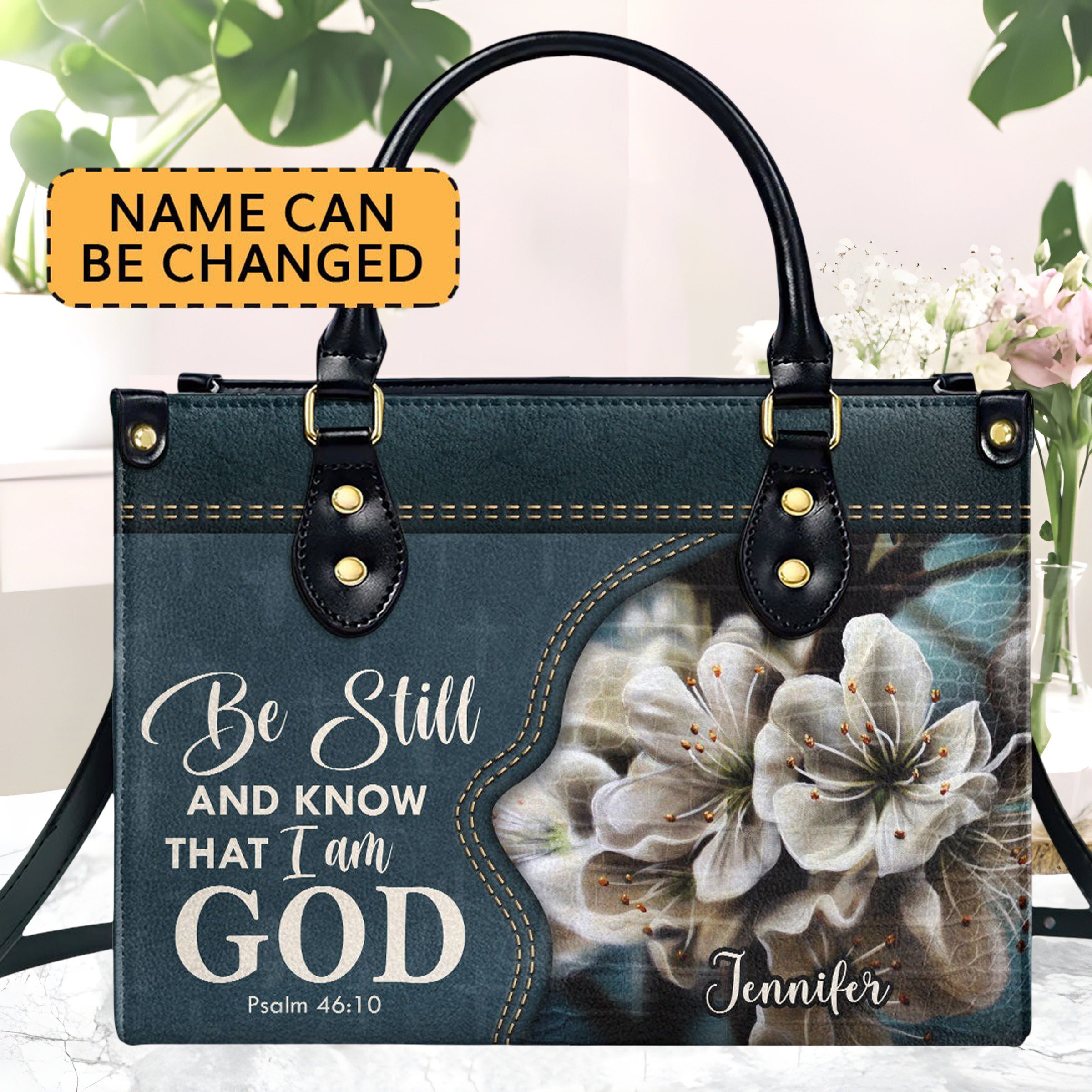 Personalized Christian Leather Handbag, Be Still and Know That I Am God Purse – Psalm 46:10 Faith Bag with Flowers BLAF49