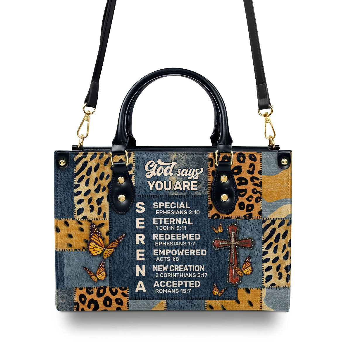 Personalized God Says You Are Christian Leather HandBag, Custom Name Scripture Handbag, Religious Faith Gift for Women BLAF19