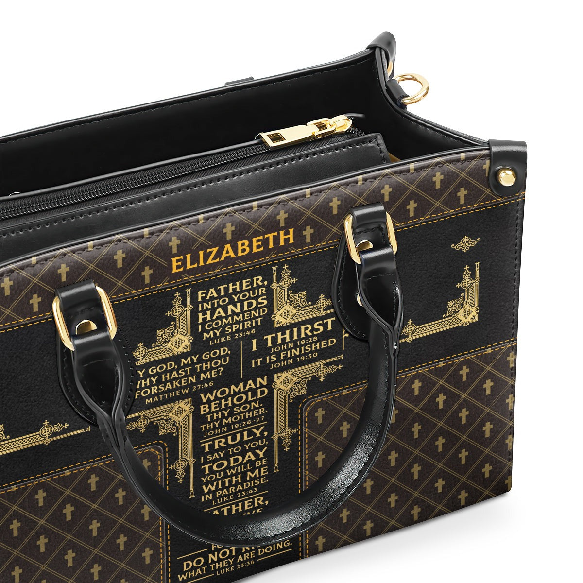 Personalized Christian Leather HandBag, The Seven Last Words of Jesus Cross Handbag, Custom Name Religious Faith Gift for Women BLAF20