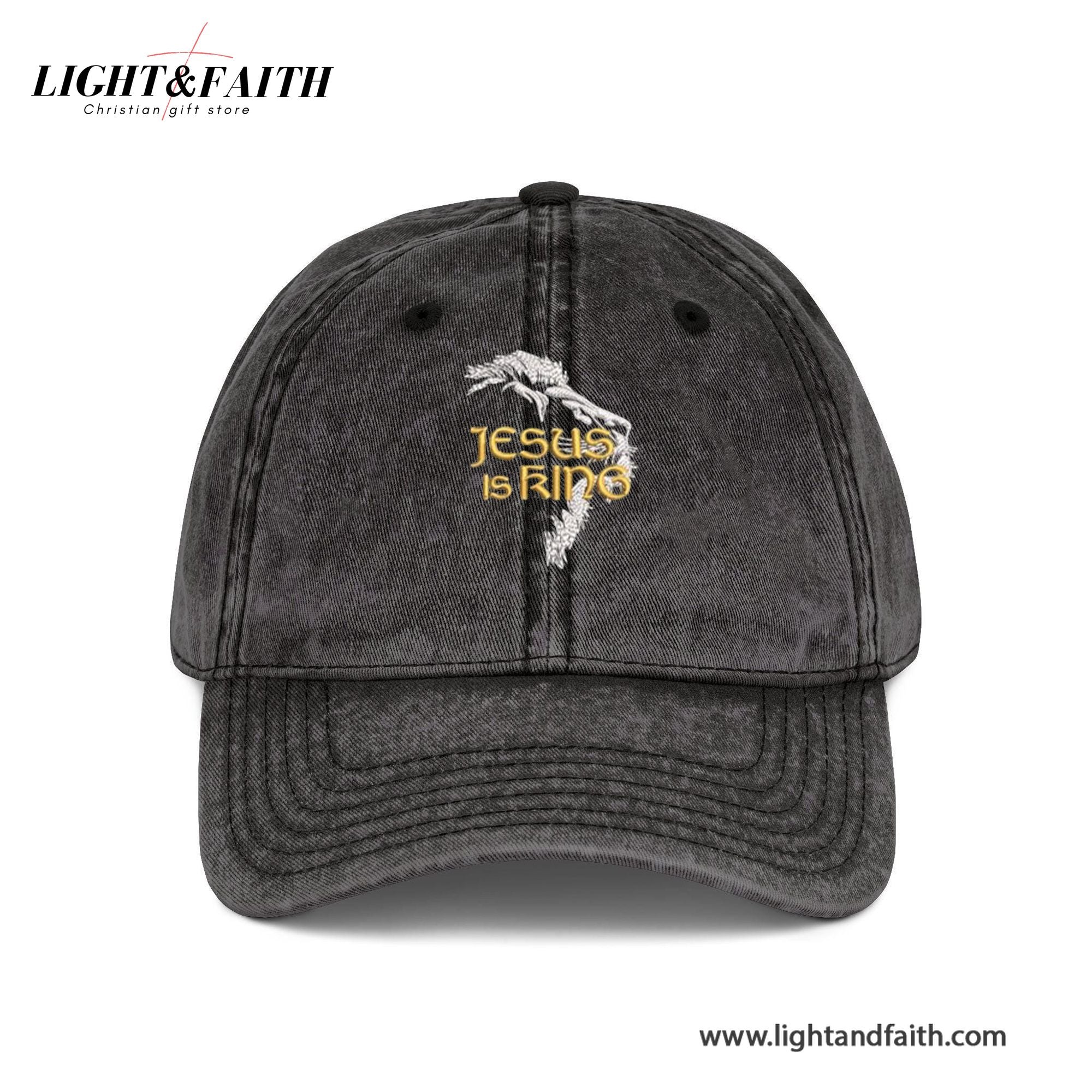 Vintage Jesus Is King Washed Cap, Christian Faith Adjustable Baseball Hat, Washed Black Dad Hat for Women and Men, Religious Golf Apparel LAFH23