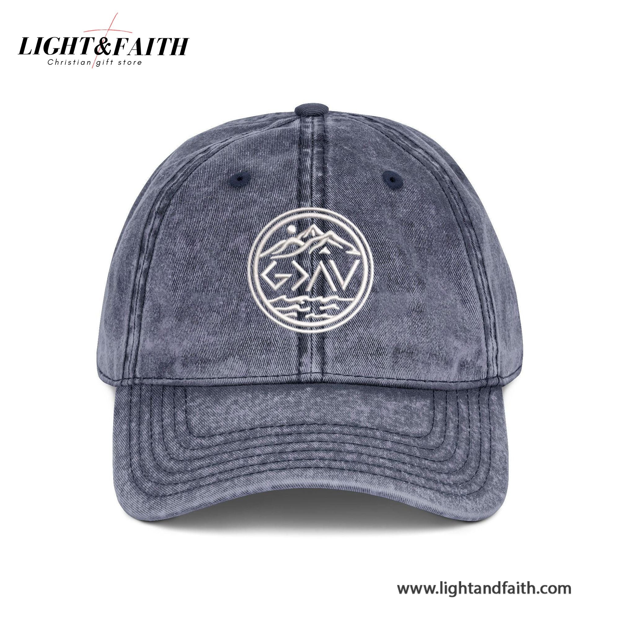 God Is Greater Symbol Embroidered Hat, Washed Black Faith Cap With Mountains And Waves, Christian Adventure Gift For Men, Christian Jesus Gifts LAFH12