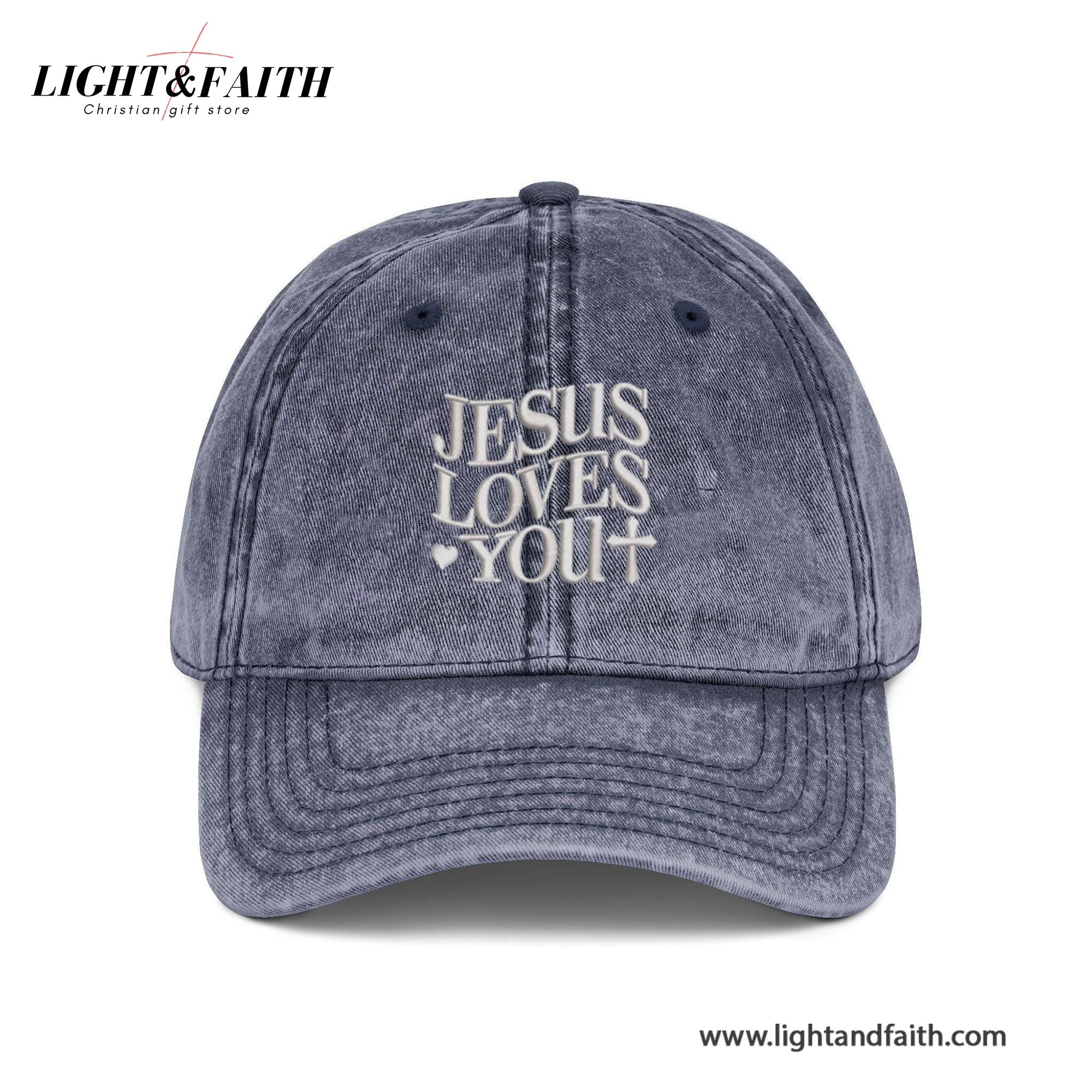 Jesus Loves You Embroidered Hat, Washed Christian Baseball Cap With Heart And Cross, Faith Gift For Women, Men, Teens And Believers LAFH15