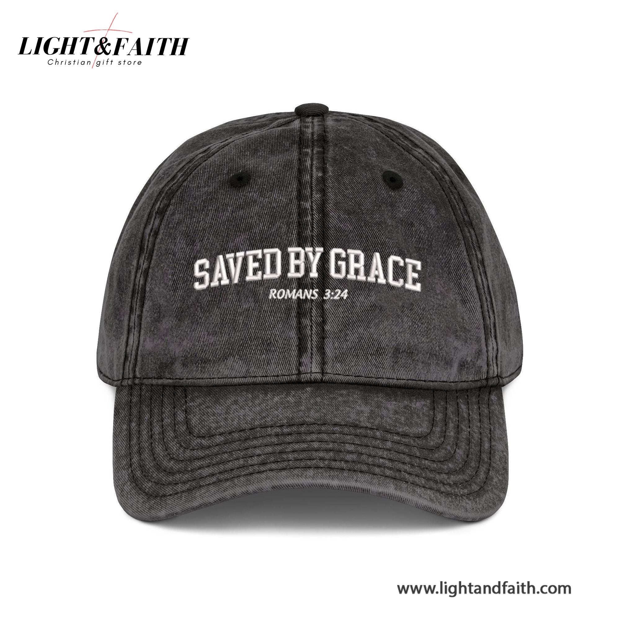 Saved By Grace Romans 3:24 Embroidered Hat, Washed Christian Cap With Bible Verse, Faith-Based Gift For Believers, Men, Women, Teens LAFH16
