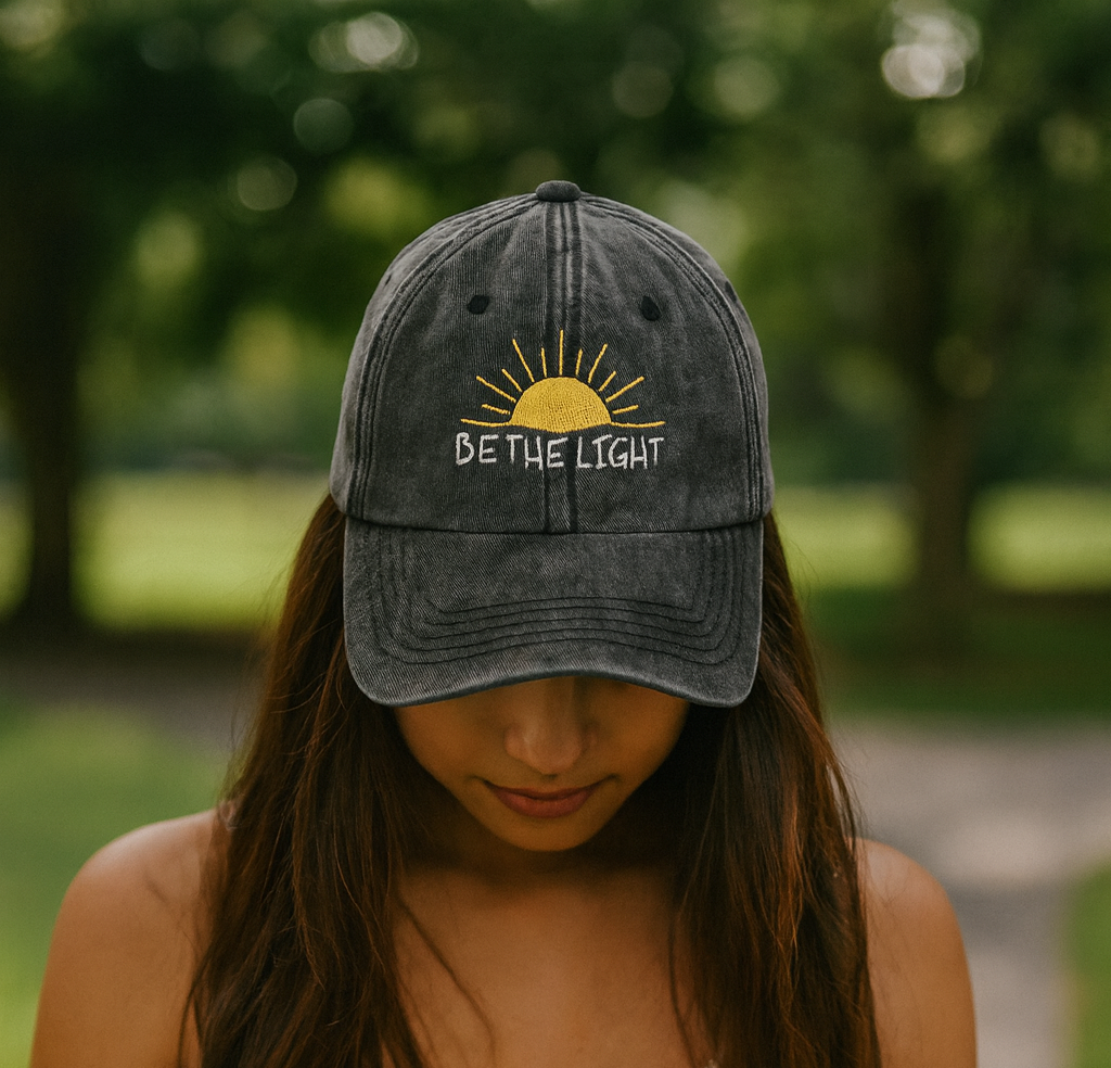 Be The Light Embroidered Hat, Vintage Washed Baseball Cap, Christian Faith Sun Hat, Inspirational Quote Dad Hat LAFH07