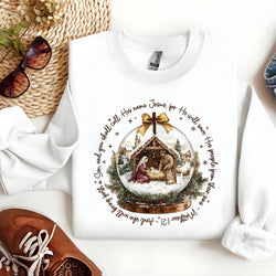Oh Come Let Us Adore Him Sweatshirt, Christian Nativity Snow Globe Christmas Sweater, Religious Holiday Gift, Jesus Birth Shirt