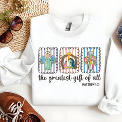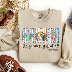 The Greatest Gift Of All Sweatshirt, Nativity Scene Christian Pullover, Religious Holiday Crewneck