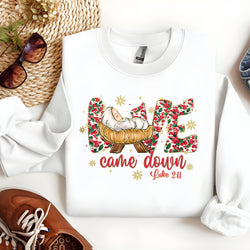 Love Came Down Christmas Sweatshirt, Luke 2:11 Bible Verse Pullover, Christian Nativity Baby Jesus Holiday Crewneck