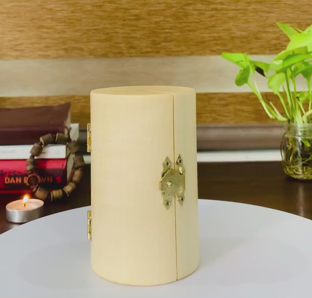 The triptych's foldable design allows it to be easily closed for safekeeping or travel, while its secure clasp ensures protection when not in use. The smooth finish of the maple wood highlights the natural grain, adding a rustic yet elegant touch to your spiritual dƩcor.