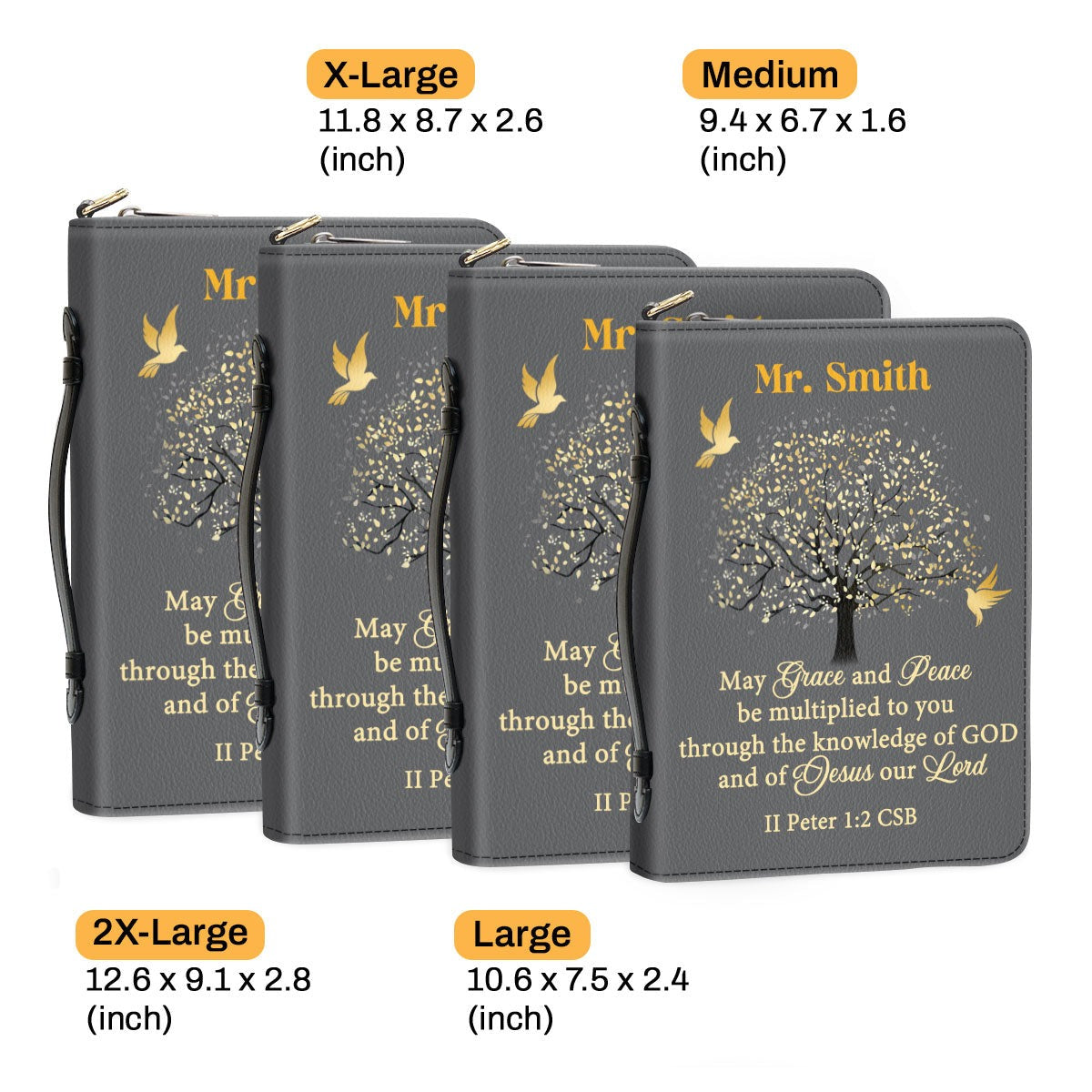 Grace And Peace Leather Book Cover, Personalized Zippered Bible Cover With Handle, Christian Inspirational Gifts For Pastor