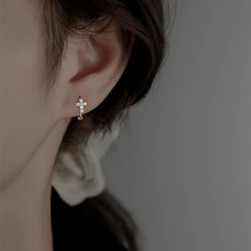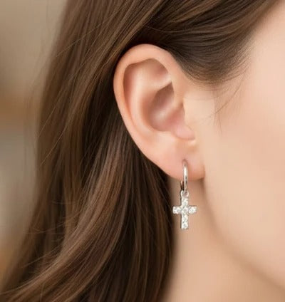 Catholic-Inspired Silver Cross Earrings – Sparkling Pave Diamond Style