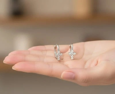 These Catholic-Inspired Silver Cross Earrings feature a classic cross design with sparkling pave stones. Made from high-quality sterling silver, they offer elegance and spiritual meaning. Perfect for daily wear or as a thoughtful gift for any religious occasion.