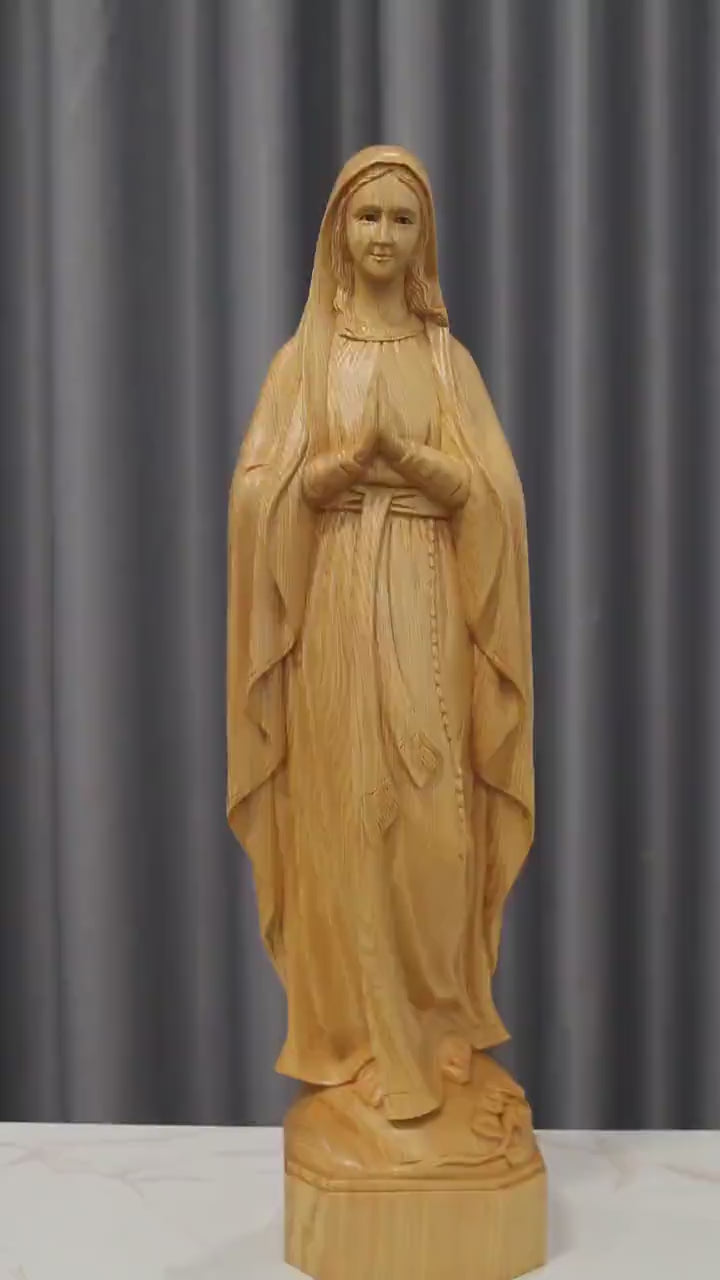 Hand-made from devotion, this holy Mary altar statue is carefully handcrafted by artists in Vietnam. We used high-quality treated beech wood imported from Europe.